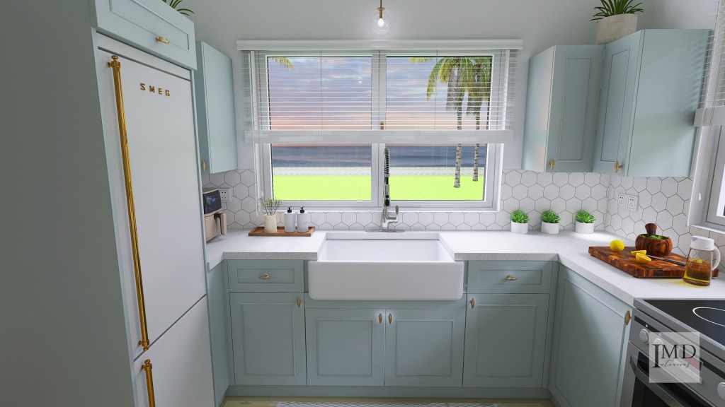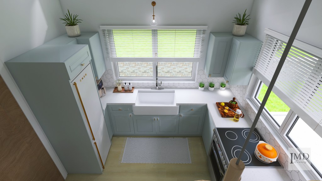 - Design Brief: A small, beautiful kitchen design which facilitates smooth workflow, with practical storage solutions and a layout that allows for easy movement. A space that is well-lit, enhancing productivity and ambiance.